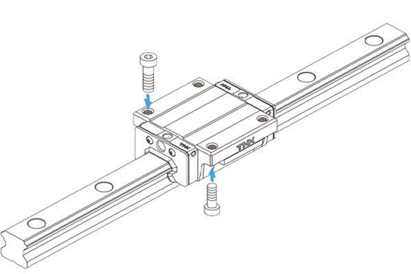 THK HSR Guide is the flange of the LM block has tapped holes. HSR Guide can be mounted from the top or the bottom.